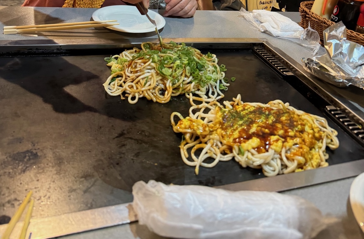 Tiny Hiroshima Okonomiyaki place straight out of Cowboy Bebop. This is noodle-base Okonomiyaki that is distinct from the Osaka variant. The atmosphere is great and the food is delicious. Main dishes are prepared Teppanyaki-style and served on your own per-table hot plate. The menu has a distinct section for vegan options. Do not miss. Close to the Peace Park.