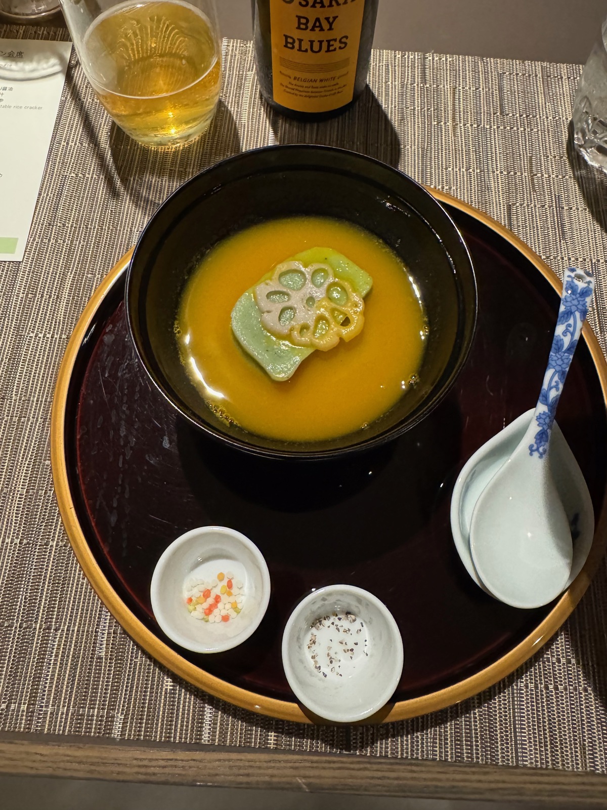This is a luxury Onsen / Hotel with an outstanding Grand Bath that’s worth its own visit. If you’re a guest, Kaiseki dinner is available for pre-order. Compared to other vegan Kaiseki we had it was middle of the road, which by Japanese standards still means very good, but there’s better to be had. This is mainly so you can safely book this hotel and spa and have food covered.